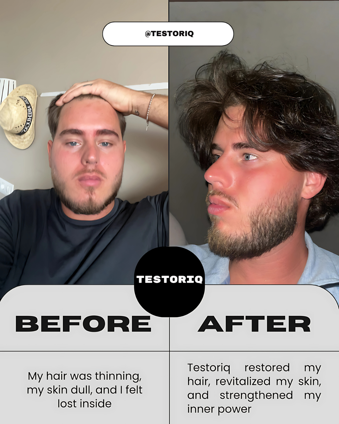 the Testoriq.01 Men’s Vitality Supplement and the Testoriq Botanical Hair Serum.